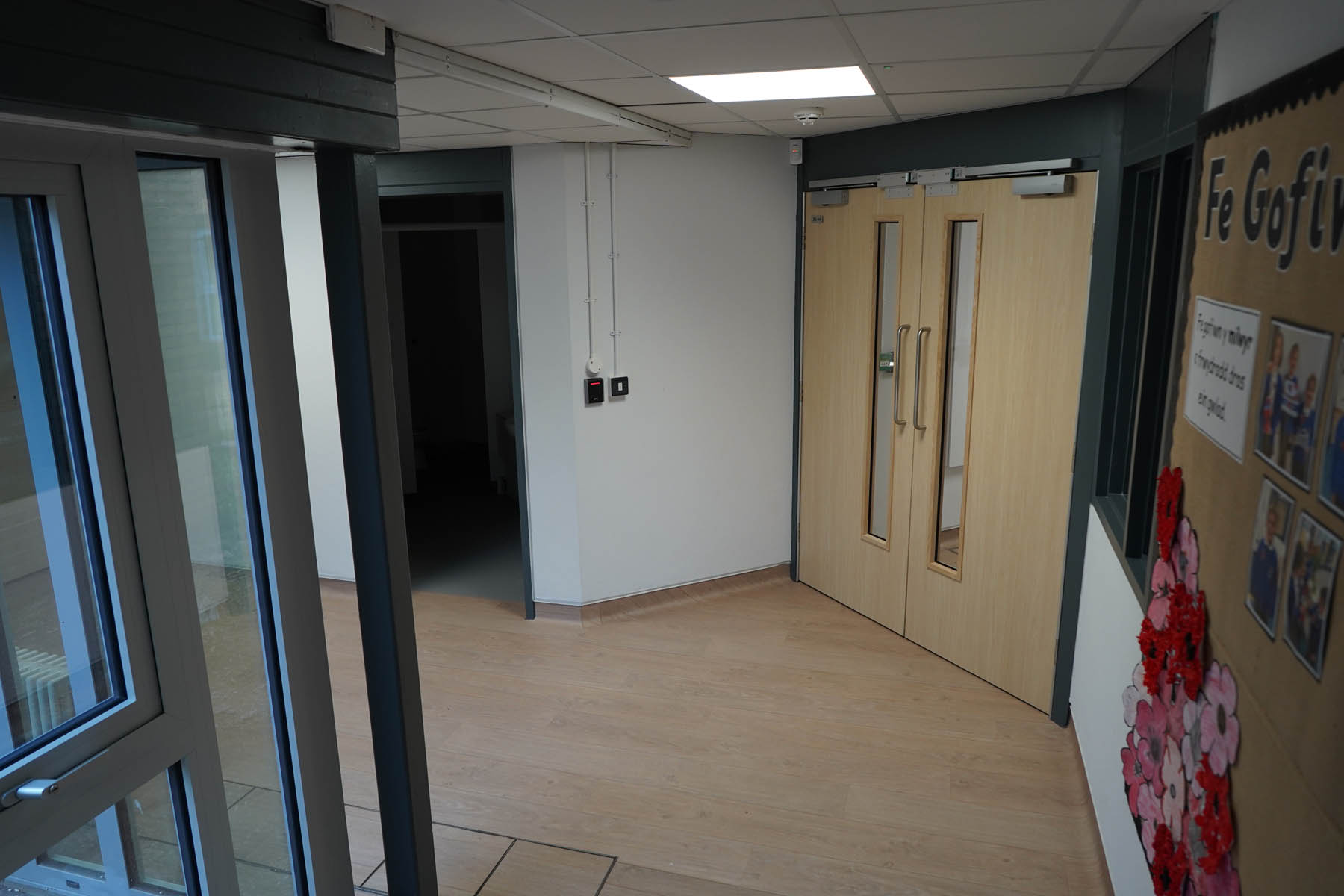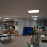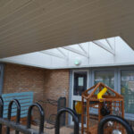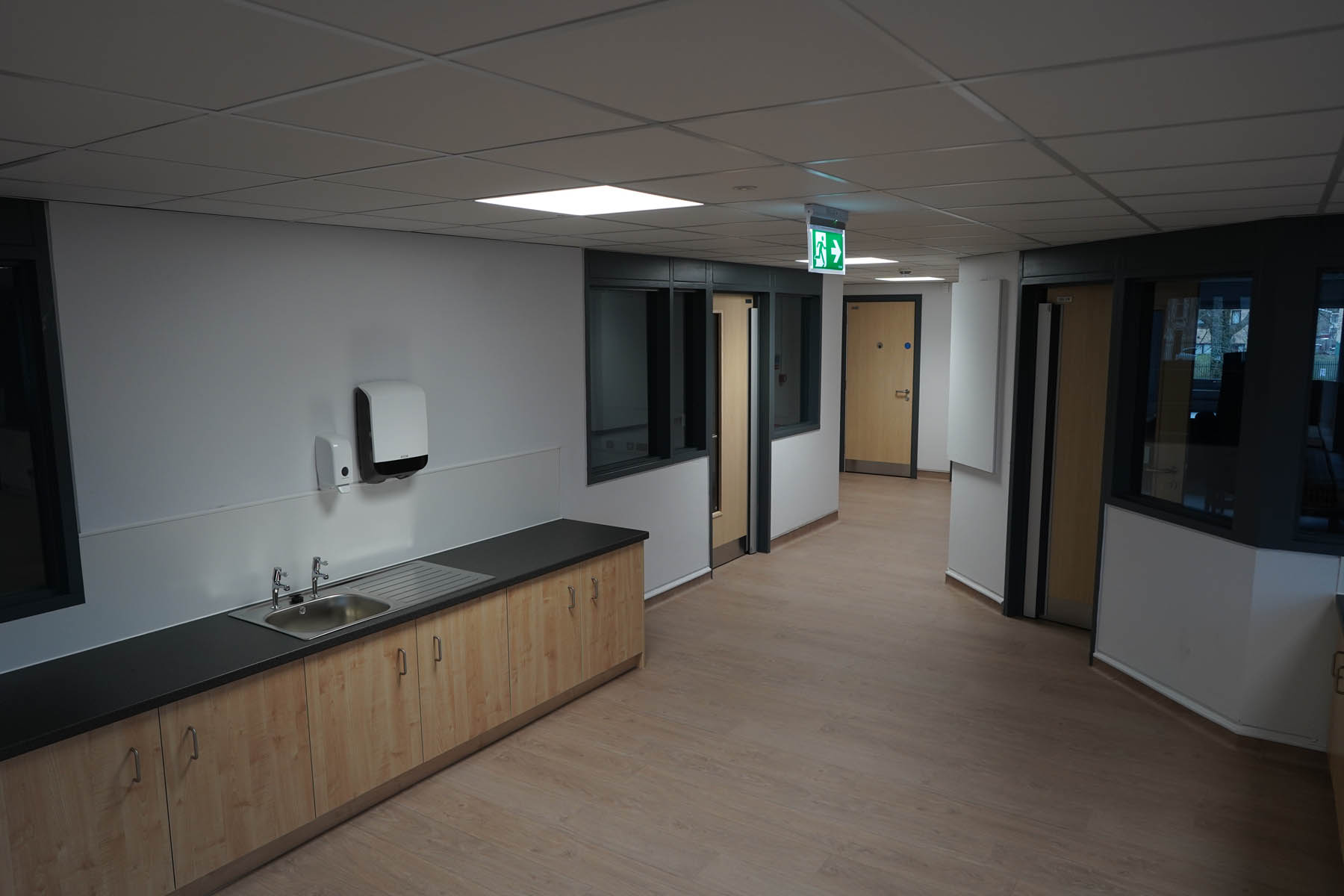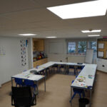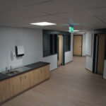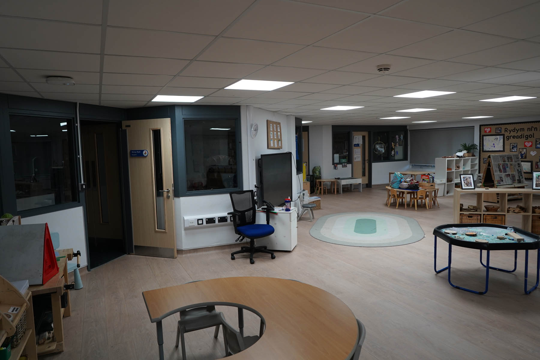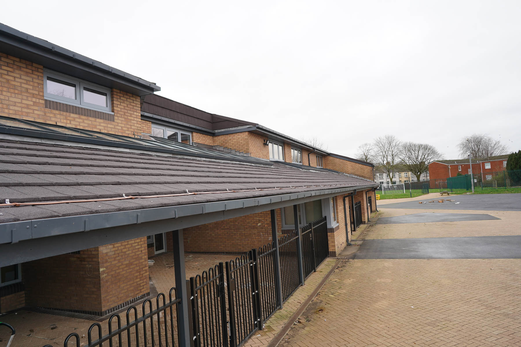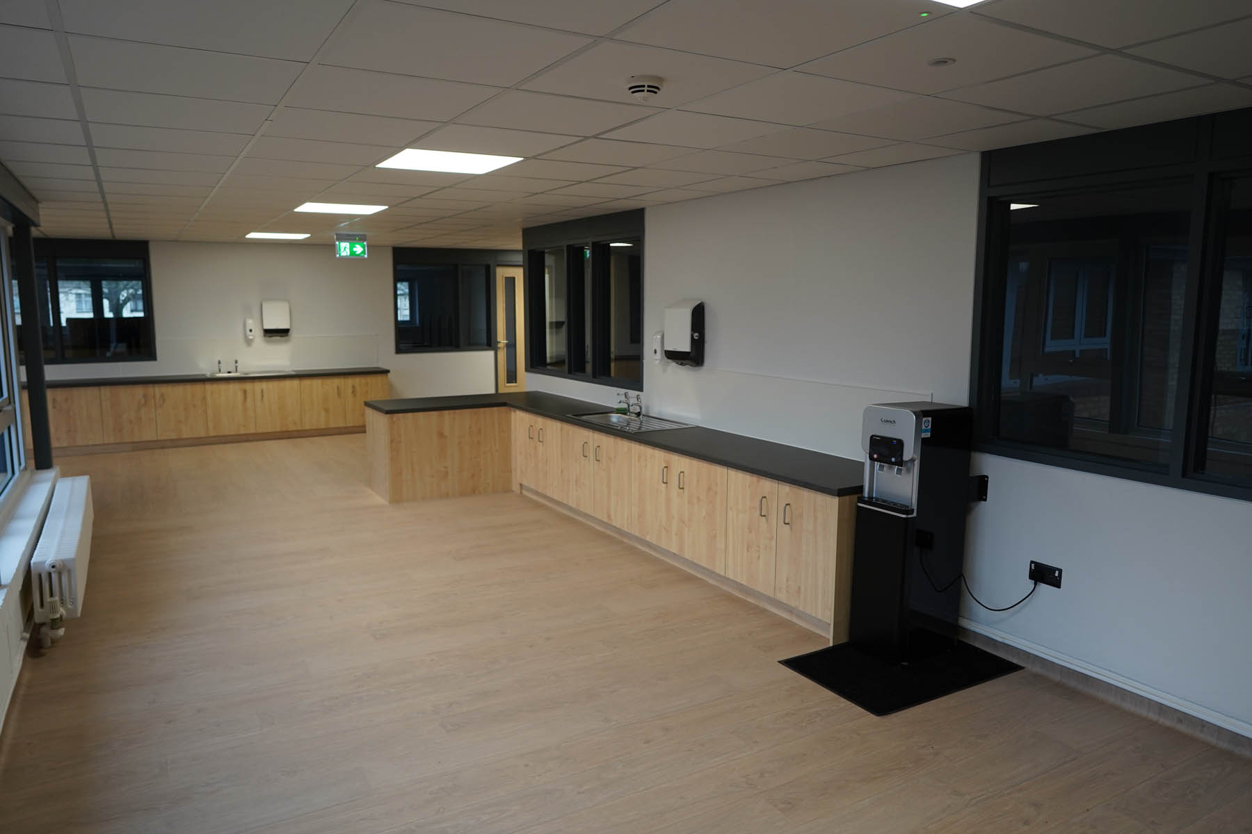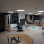 phased refurbishment and remodelling to accommodate the new school use. Works set over ground and first floors with over 3000m2 floor area covered. New toilet facilities throughout, new floors and ceilings, new joinery and decoration, upgrades to lighting and fire alarm, complete new roof coverings, new fencing and gates, resurfacing works to play areas, new canopies and soft play flooring surfaces.
