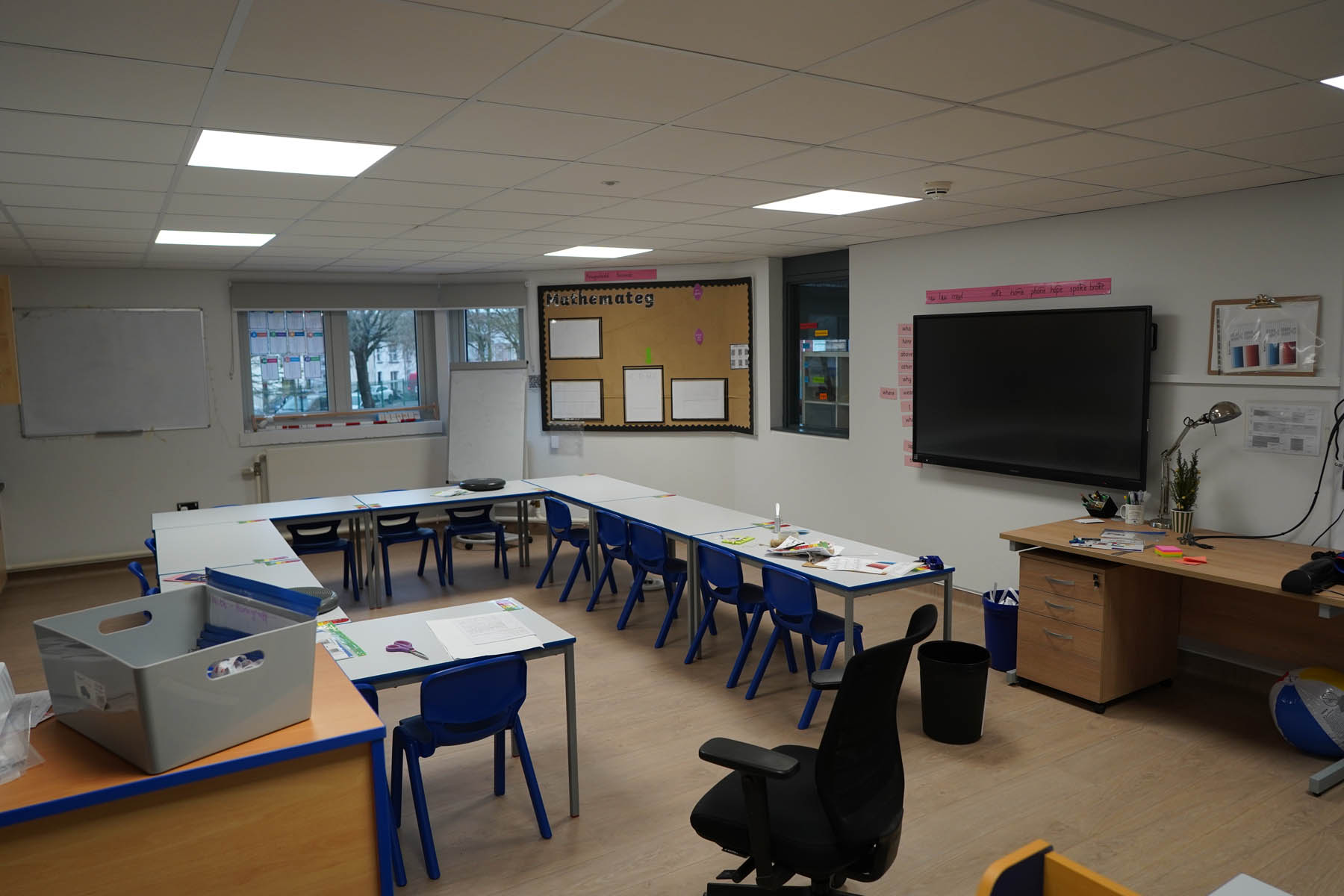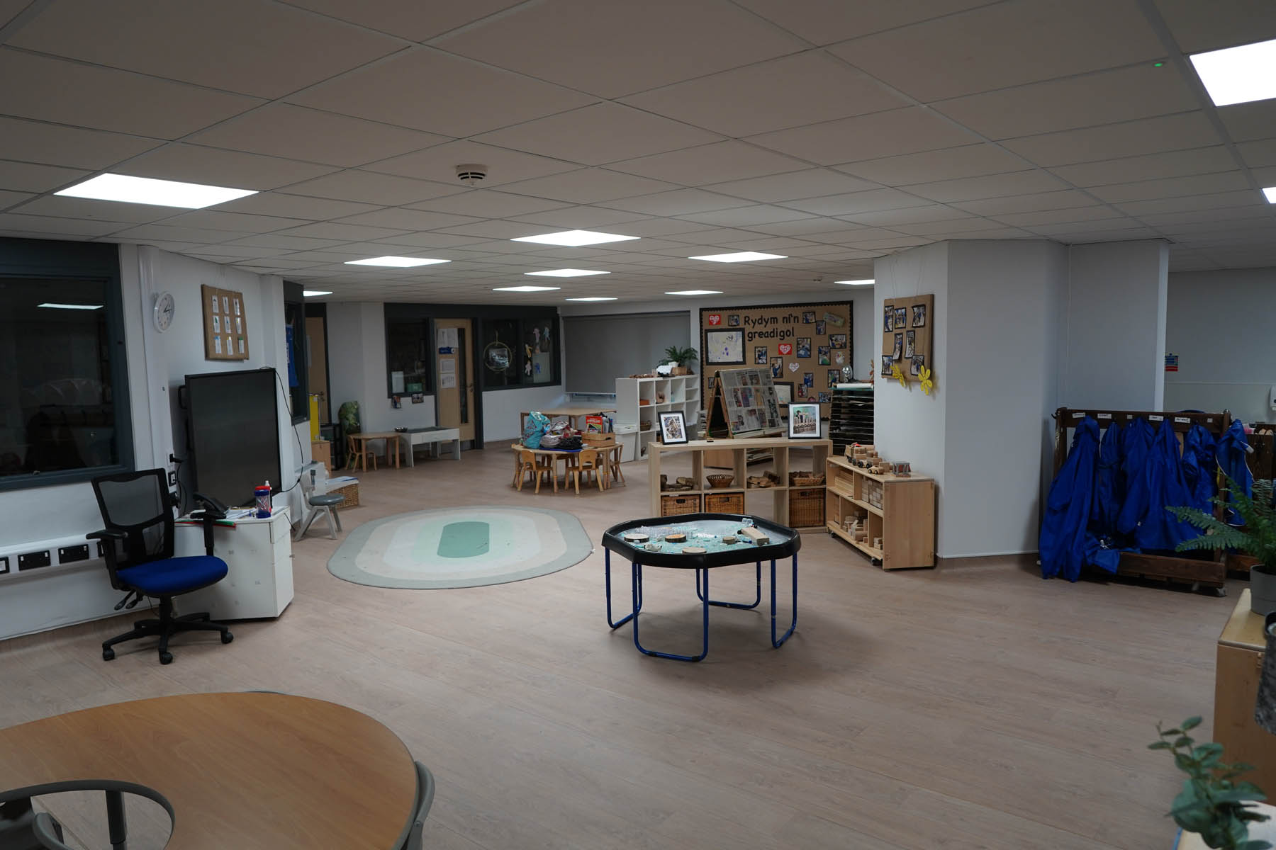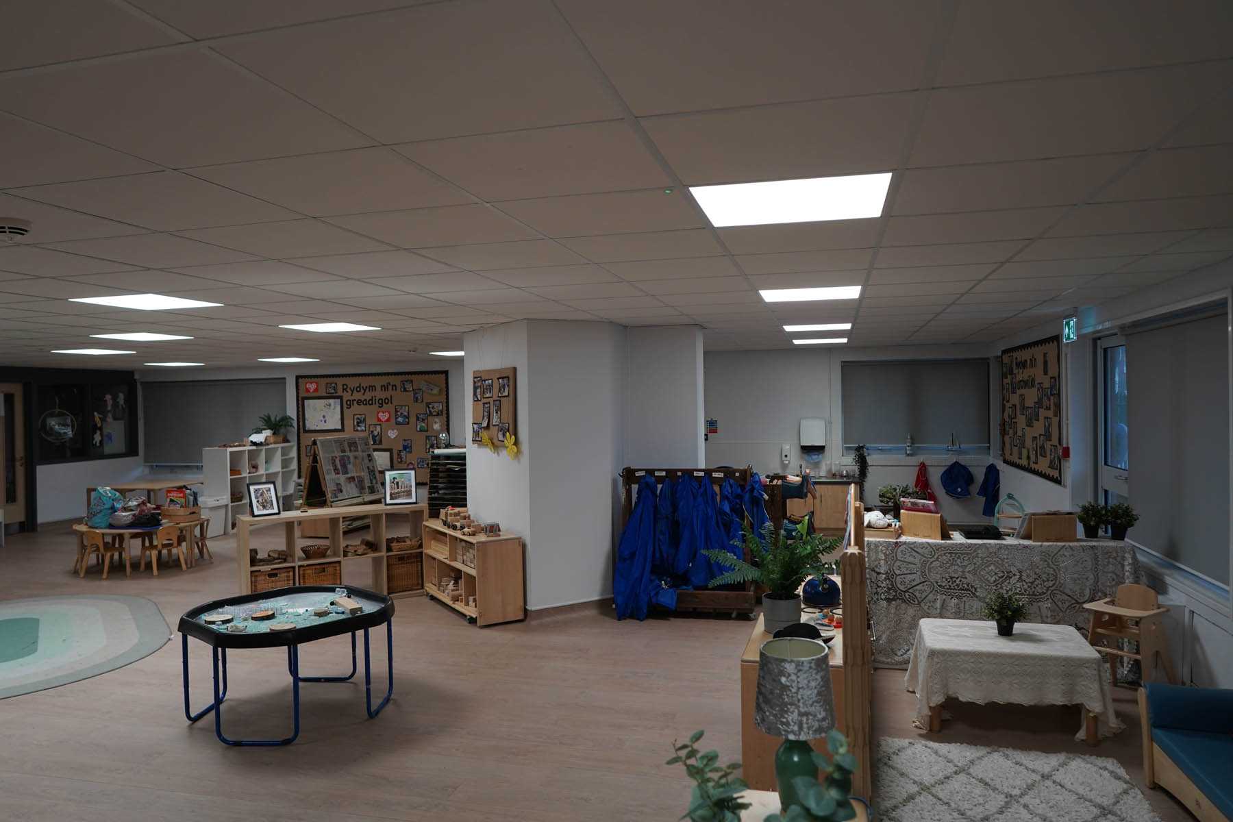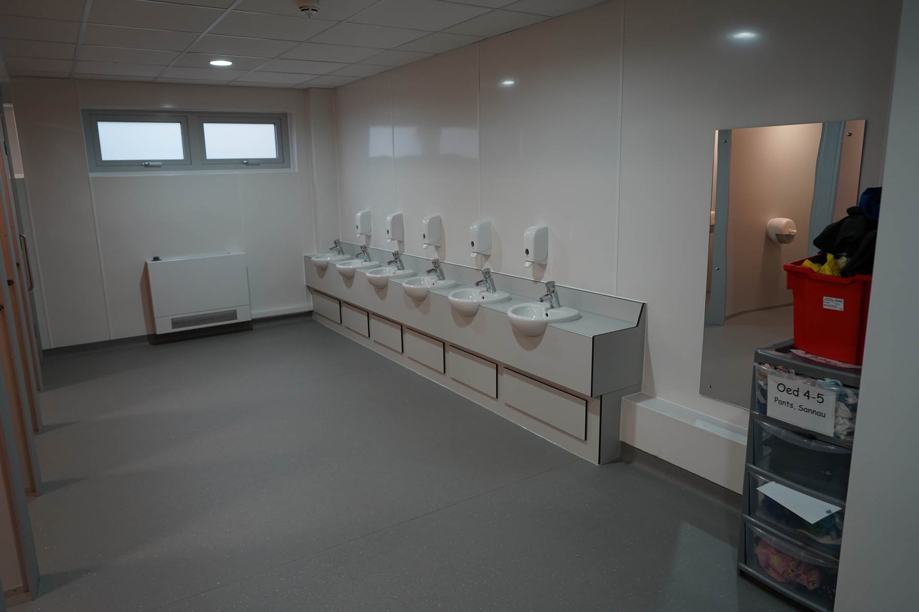 phased refurbishment and remodelling to accommodate the new school use. Works set over ground and first floors with over 3000m2 floor area covered. New toilet facilities throughout, new floors and ceilings, new joinery and decoration, upgrades to lighting and fire alarm, complete new roof coverings, new fencing and gates, resurfacing works to play areas, new canopies and soft play flooring surfaces.