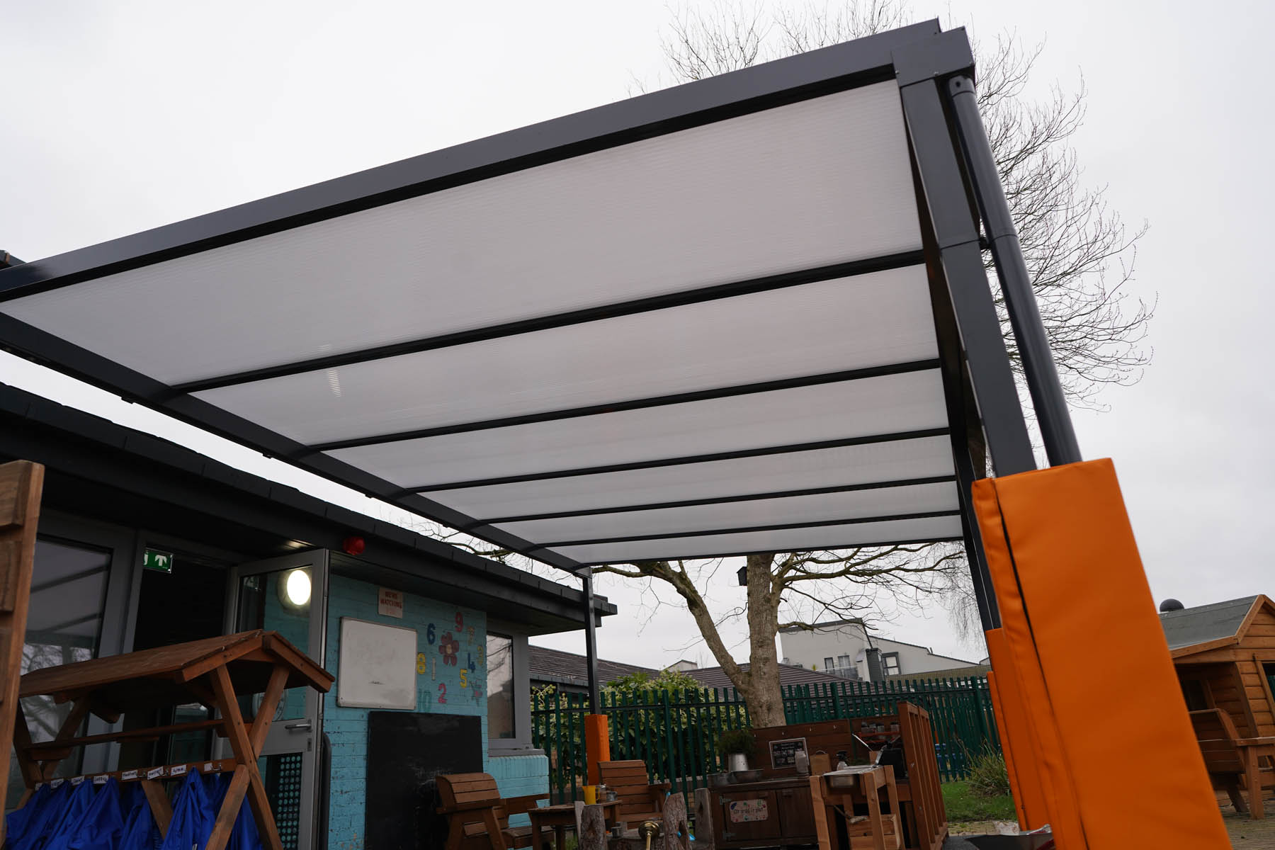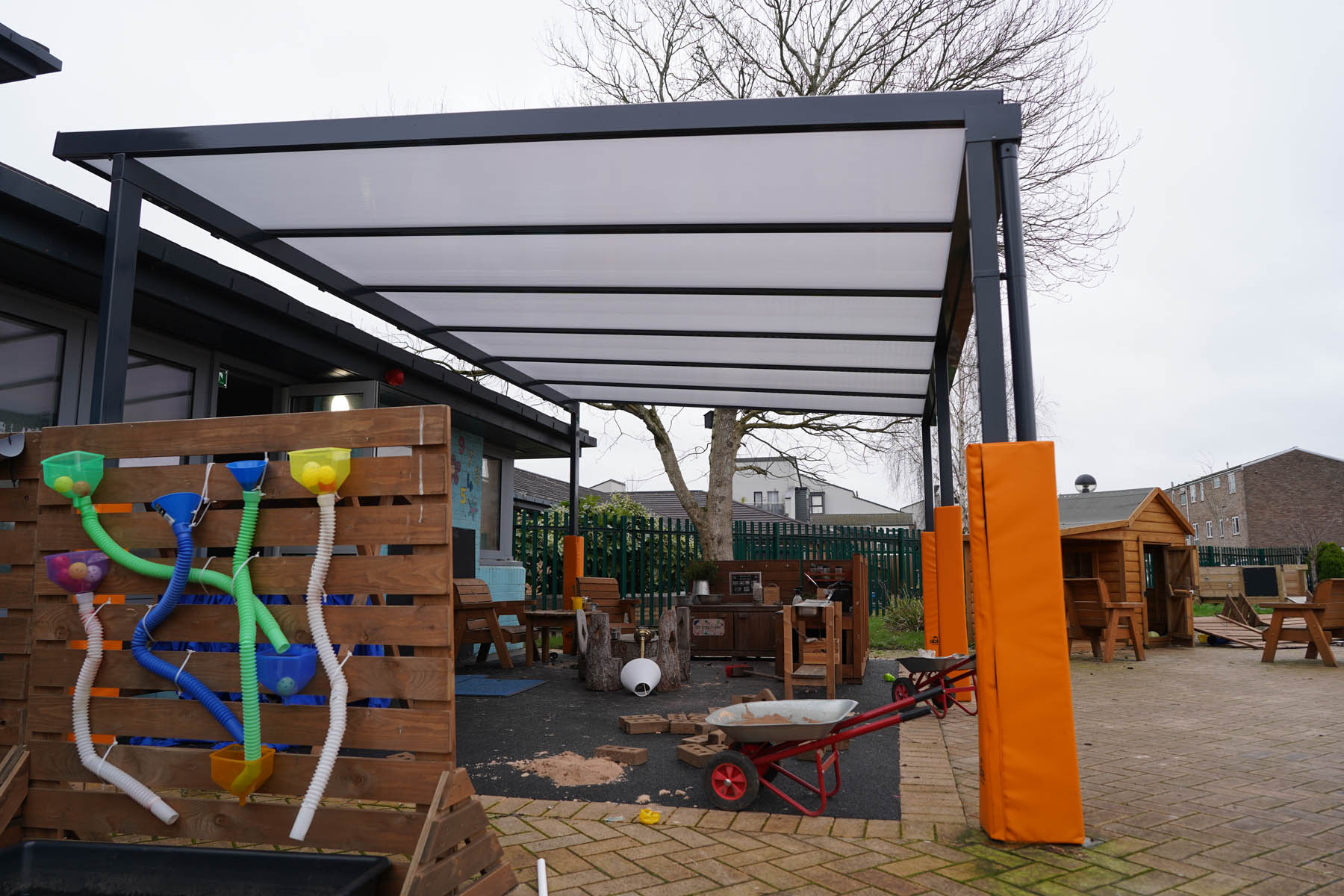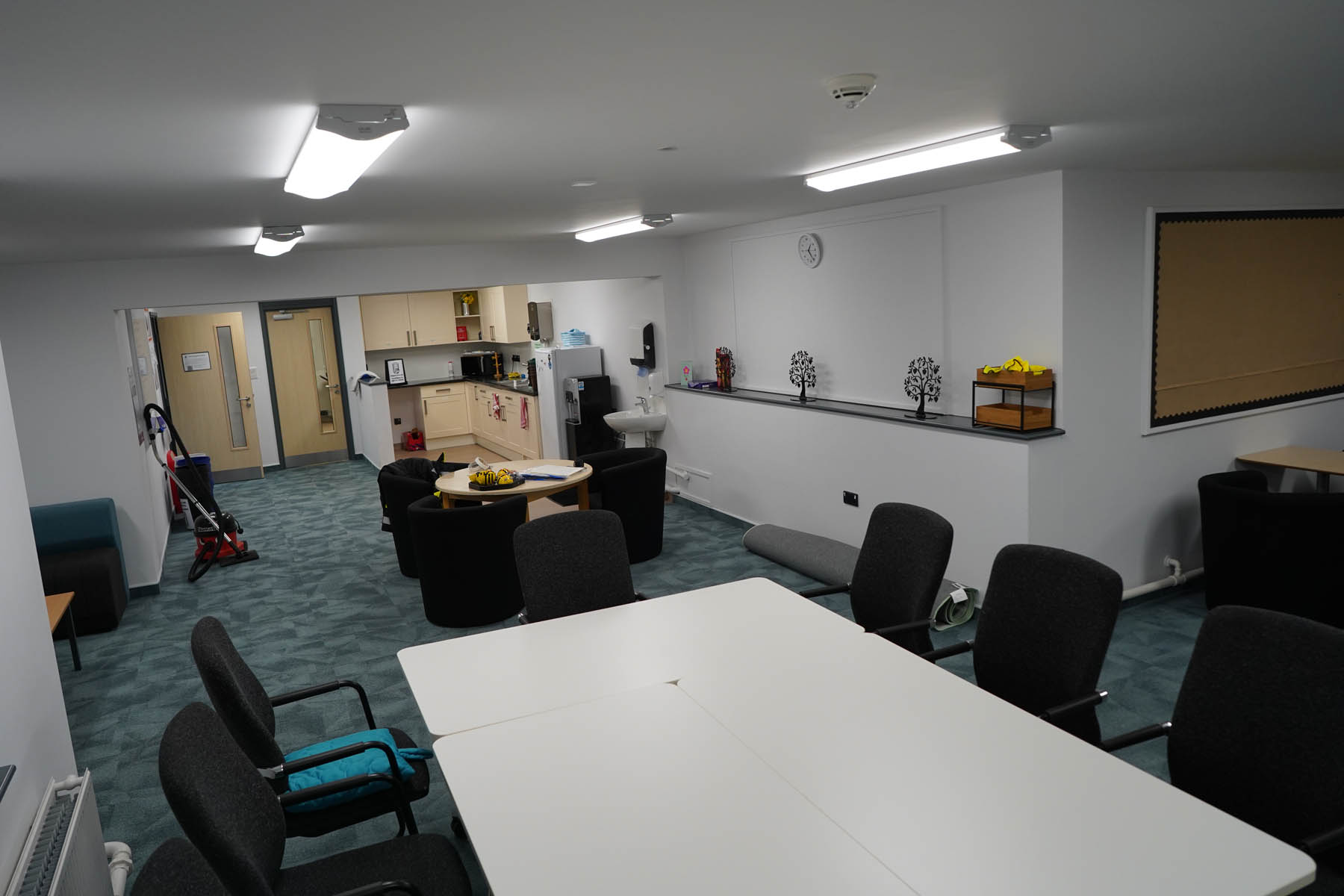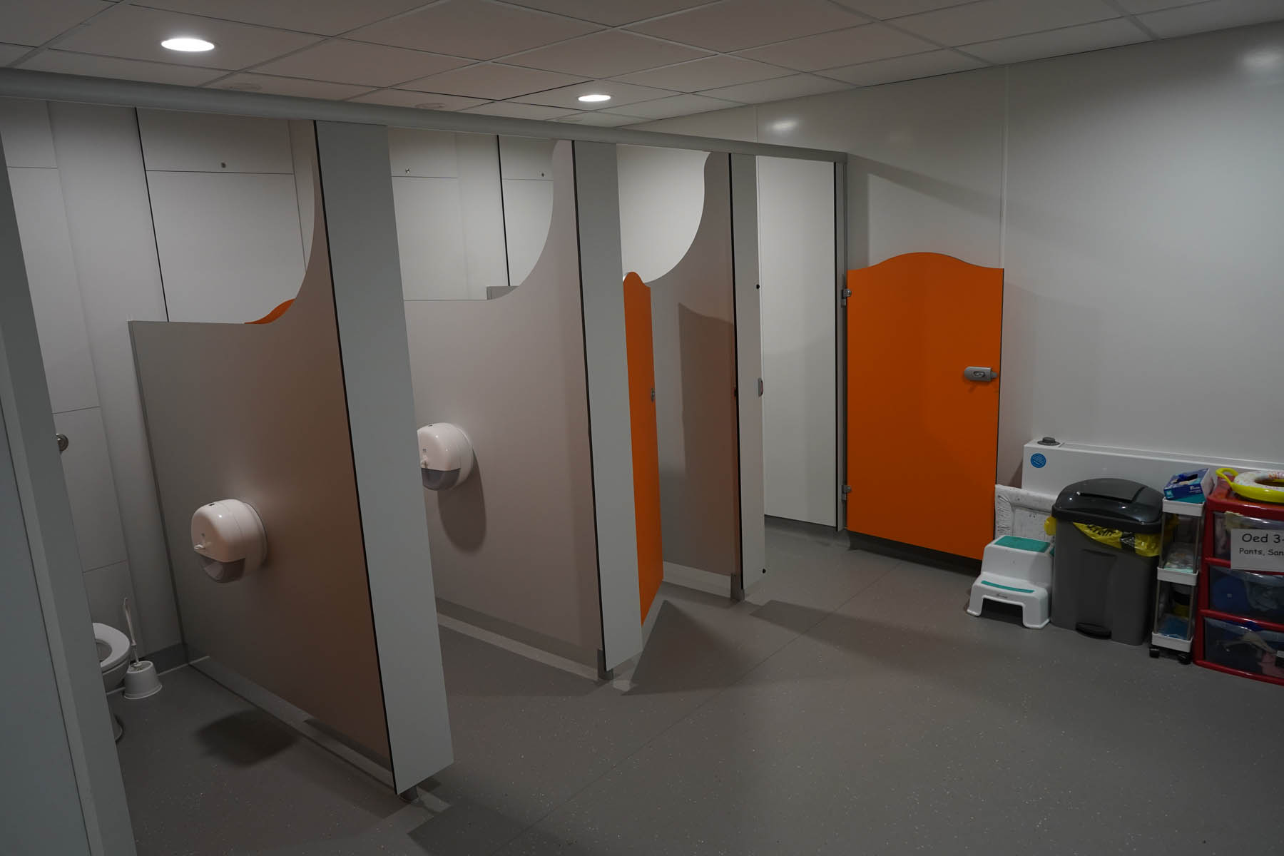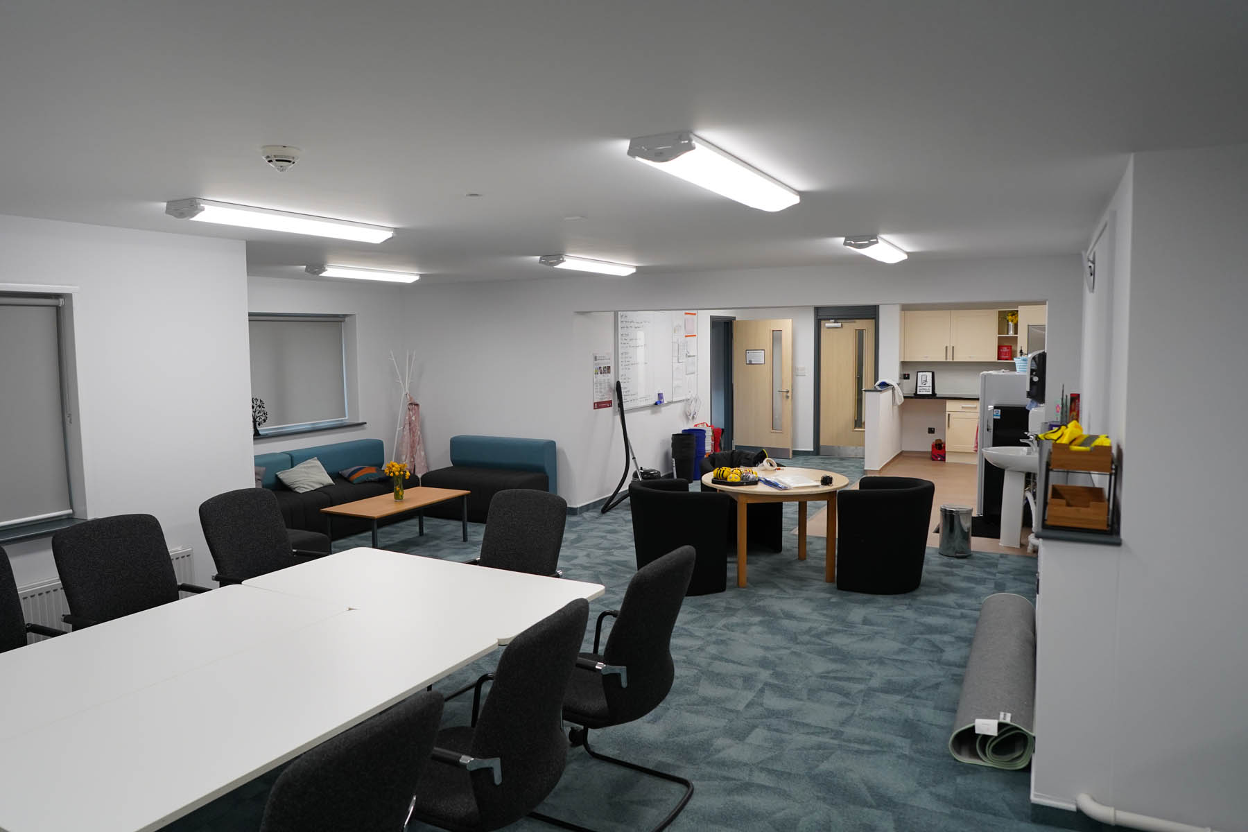 phased refurbishment and remodelling to accommodate the new school use. Works set over ground and first floors with over 3000m2 floor area covered. New toilet facilities throughout, new floors and ceilings, new joinery and decoration, upgrades to lighting and fire alarm, complete new roof coverings, new fencing and gates, resurfacing works to play areas, new canopies and soft play flooring surfaces.